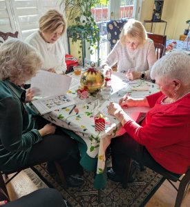 The members braved the cold and snow to President Debby’s home for the 2025 Christmas Party. Debby’s home was beautifully decorated for Christmas. Click on any photo to view in larger carousel format.