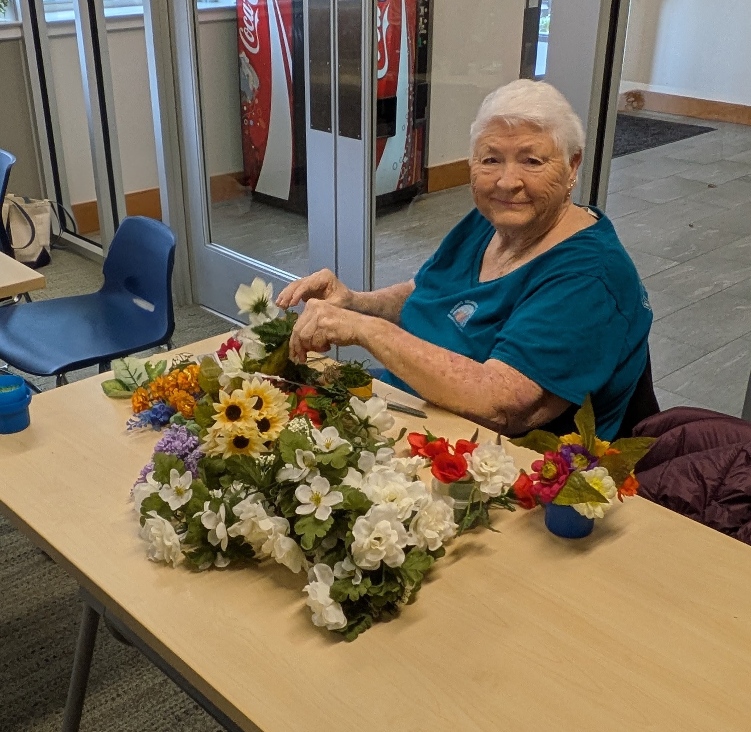 Bev working on her flowers